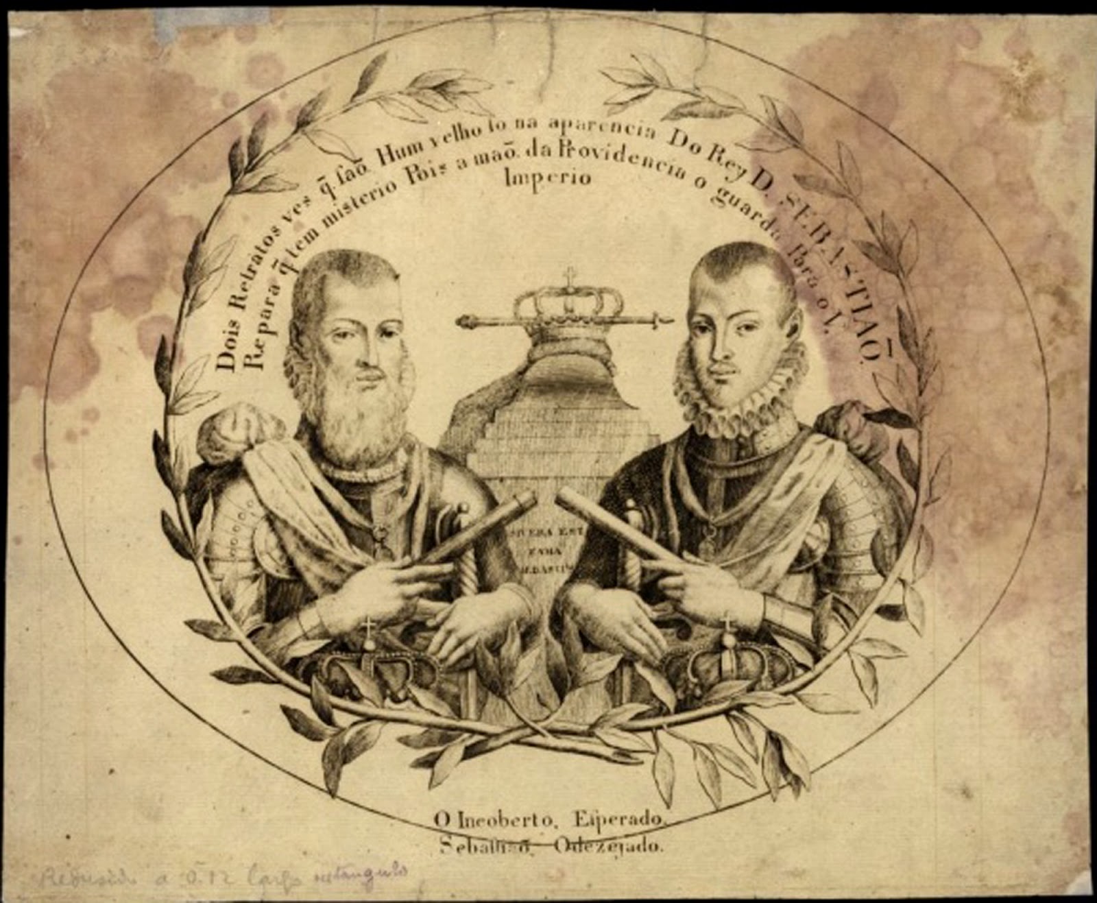pareciam muito com os retratos que ha-de El-Rei D. Sebastião em velho.
